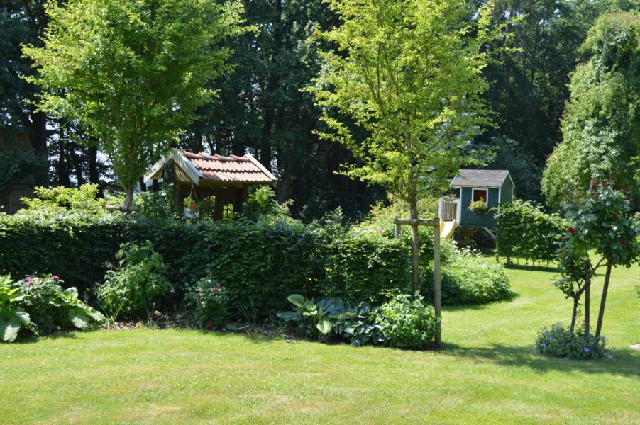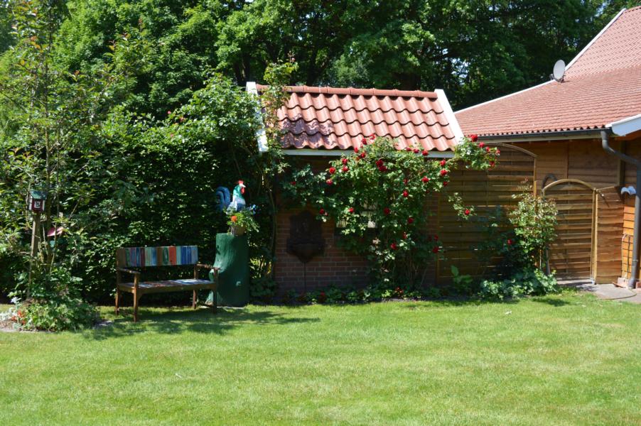 Sie wollen gemütlich draußen frühstücken und dafür nicht gleich zu einem Picknick aufbrechen? Keine Sorge, unsere Ferienwohnung ist mit einem eigenen Garten ausgestattet. So können Sie mit Ihrer Familie oder Freunden genüsslich auf der Terrasse oder in einer lauschigen Sitzecke frühstücken und die Morgensonne genießen. Ein Grill ist vorhanden, so dass auch abends in gemütlicher Runde ein gemeinsames Essen stattfinden kann. Der direkt damit verbundene familieneigene Garten ist mit seinen Rosenbeeten, verschiedenen Obstbäumen und großer Grünfläche ein besonderes Idyll. Aber auch für Ihre Kinder ist gesorgt: mit einer Schaukel, einer Rutsche und weiteren Spielgeräten kann hier nach Lust und Laune gespielt werden.